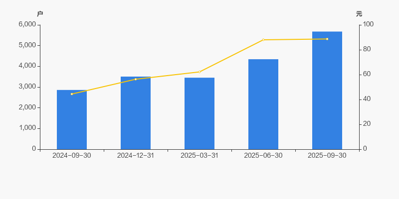 2024年9月30日至今,公司股东户数显著大幅增长,区间涨幅达98.50%。2024年9月30日至2025年9月30日区间股价上涨99.73%。