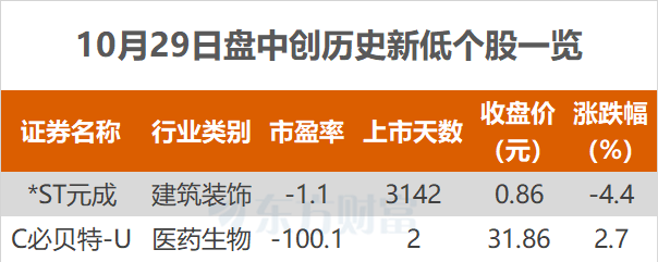 东方财富Choice数据显示,今日有2只个股盘中股价创历史新低。