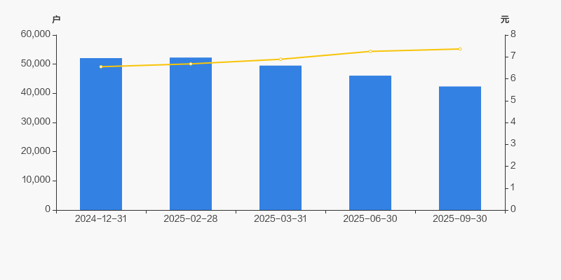 截至2025年9月30日,公司最新总股本为6.31亿股,其中流通股本为6.22亿股。户均持有流通股数量由上期的1.35万股上升至1.47万股,户均流通市值10.8万元。