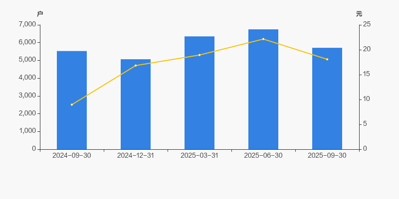 2024年9月30日至今,公司股东户数有所增长,区间涨幅为3.29%。2024年9月30日至2025年9月30日区间股价上涨76.92%。