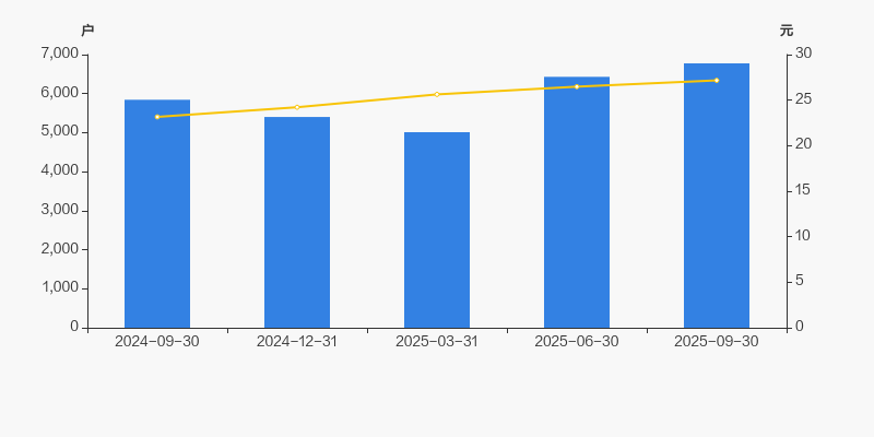 2024年9月30日至今,公司股东户数显著增长,区间涨幅为15.97%。2024年9月30日至2025年9月30日区间股价上涨17.31%。