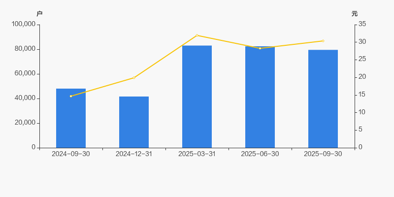 2024年9月30日至今,公司股东户数显著大幅增长,区间涨幅达65.53%。2024年9月30日至2025年9月30日区间股价上涨107.21%。