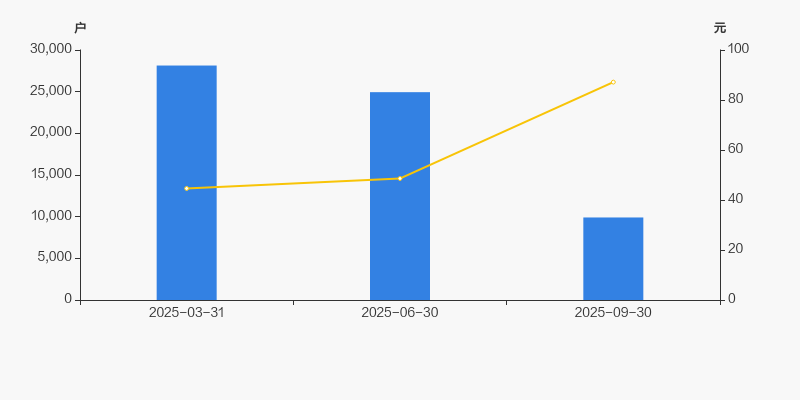 2025年3月31日至今,公司股东户数显著大幅下降,区间跌幅达64.80%。2025年3月31日至2025年9月30日区间股价上涨95.35%。