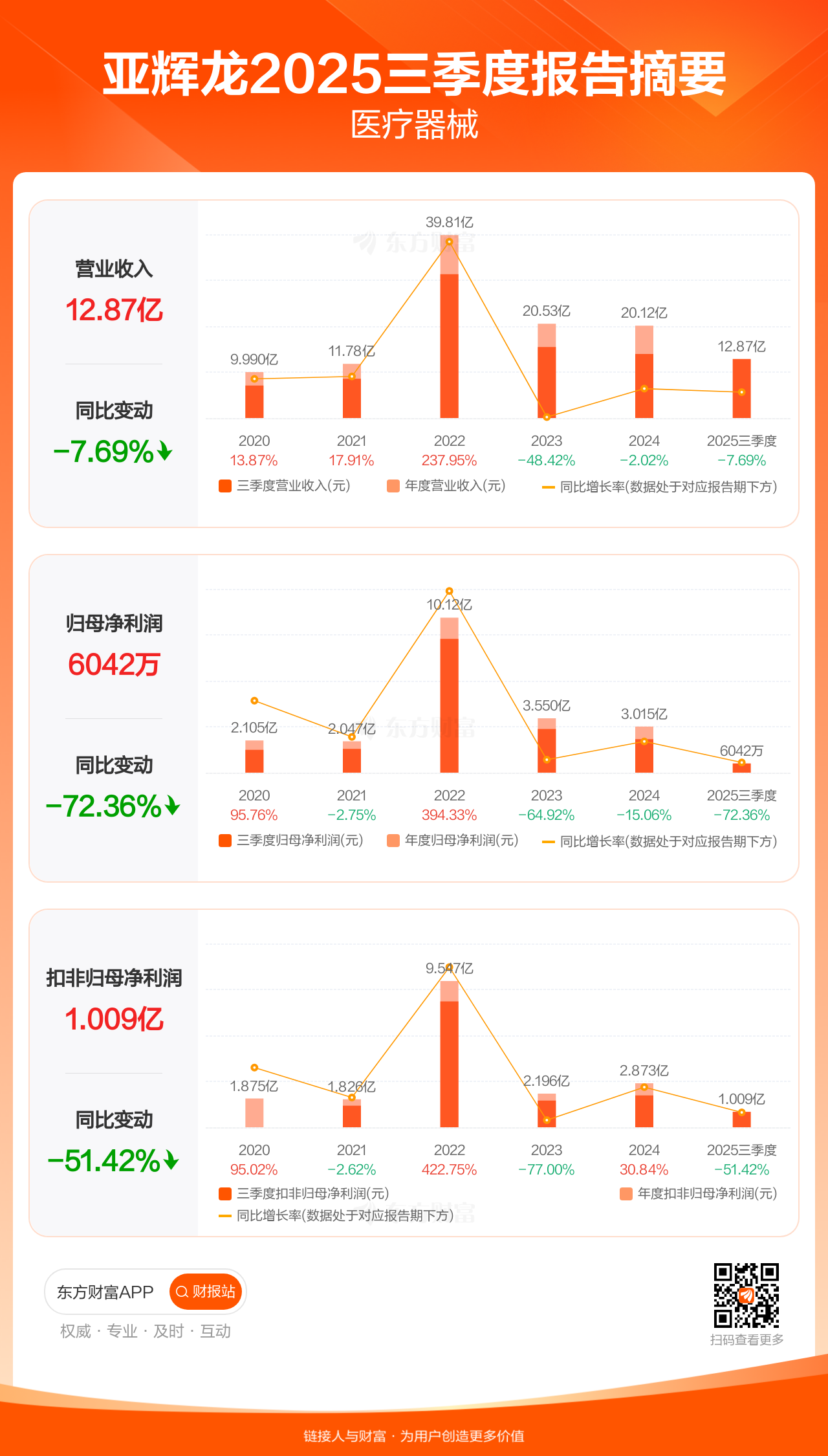 图解财报:亚辉龙前三季归母净利润6042.09万元,同比减少72.36%