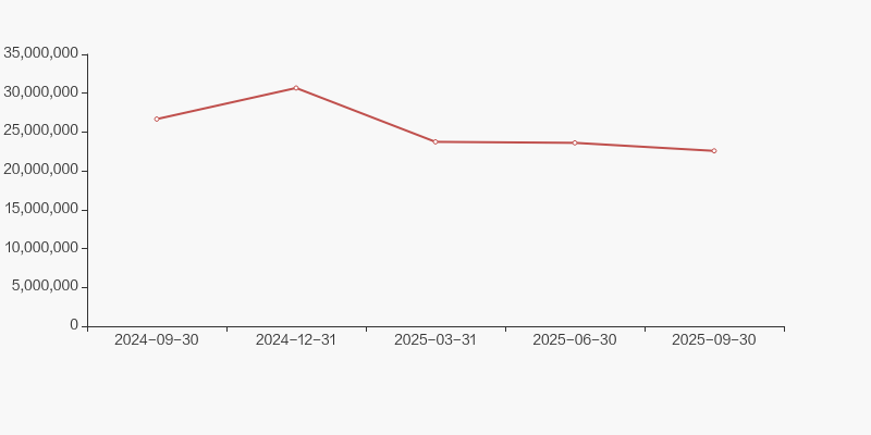 截至2025年9月30日,公司最新总股本为15.93亿股,其中流通股本为15.9亿股。户均持有流通股数量由上期的1.57万股上升至2.32万股,户均流通市值12.98万元。