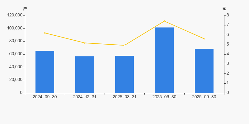 2024年9月30日至今,公司股东户数有所增长,区间涨幅为5.34%。2024年9月30日至2025年9月30日区间股价下降9.68%。