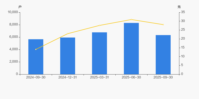 截至2025年9月30日,公司最新总股本为8067.76万股,其中流通股本为4462.37万股。户均持有流通股数量由上期的5347股上升至7050股,户均流通市值19.8万元。