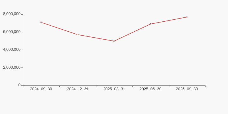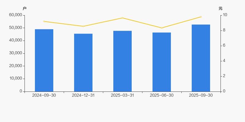 2024年9月30日至今,公司股东户数有所增长,区间涨幅为7.50%。2024年9月30日至2025年9月30日区间股价上涨6.53%。