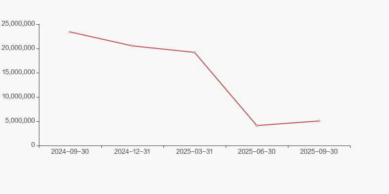 截至2025年9月30日,公司最新总股本为8.04亿股,且均为流通股。户均持有流通股数量由上期的3.83万股上升至3.92万股,户均流通市值25.11万元。