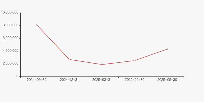 截至2025年9月30日,公司最新总股本为4.37亿股,且均为流通股。户均持有流通股数量由上期的8246股上升至8476股,户均流通市值9.81万元。