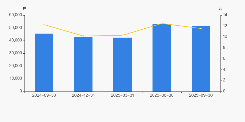 2024年9月30日至今,公司股东户数显著增长,区间涨幅为13.44%。2024年9月30日至2025年9月30日区间股价下降5.78%。