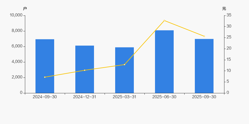 2024年9月30日至今,公司股东户数有所增长,区间涨幅为0.52%。2024年9月30日至2025年9月30日区间股价上涨258.74%。