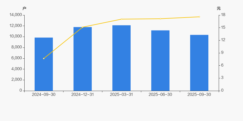 截至2025年9月30日,公司最新总股本为1.41亿股,其中流通股本为1.06亿股。户均持有流通股数量由上期的9522股上升至1.03万股,户均流通市值18.11万元。