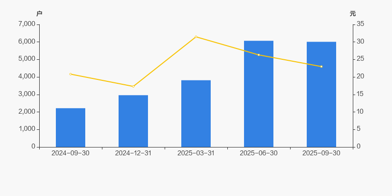 2024年9月30日至今,公司股东户数成倍增长,区间涨幅达171.13%。2024年9月30日至2025年9月30日区间股价上涨10.35%。