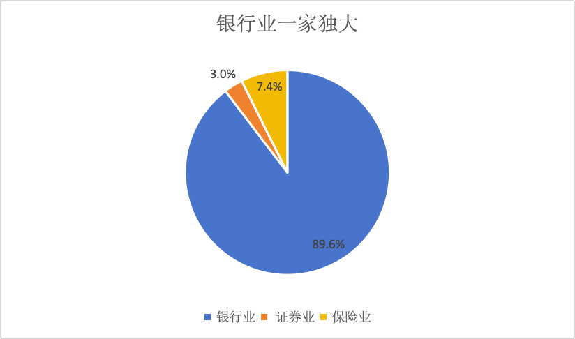 从占比来看,今年一季度末银行业、保险业、证券业资产占金融业总资产的比重分别为89.6%、7.4%、3.0%。这一定程度上显示我国金融业银行仍占绝对优势,其他金融机构发展不充分。对此,监管部门也明确指出,加快保险、证券等行业发展。