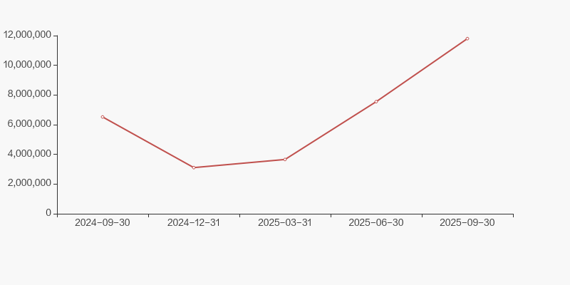 自2024年12月31日以来,公司股东户数连续3期上涨,截至目前增幅为13.64%。2024年12月31日至2025年9月30日区间股价上涨28.34%。