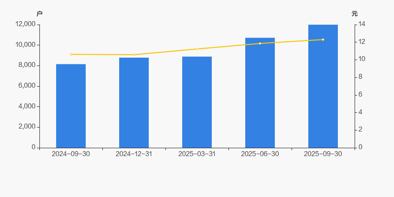 自2024年9月30日以来,公司股东户数连续4期上涨,截至目前增幅为47.18%。2024年9月30日至2025年9月30日区间股价上涨15.78%。