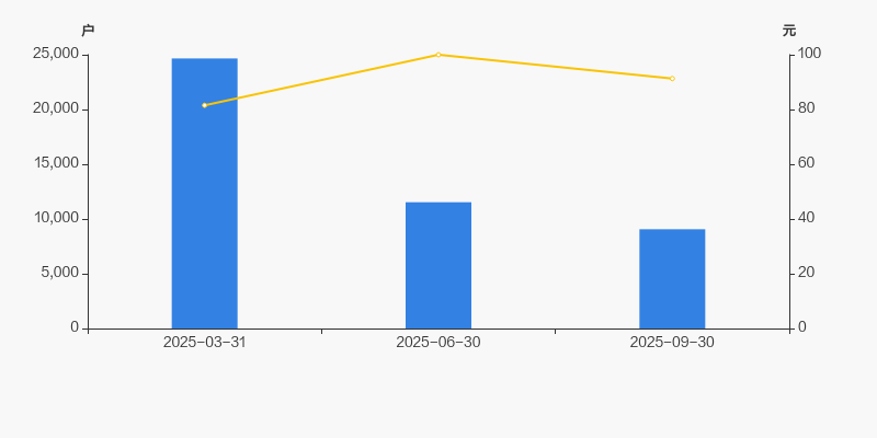 2025年3月31日至今,公司股东户数显著大幅下降,区间跌幅达63.25%。2025年3月31日至2025年9月30日区间股价上涨12.00%。