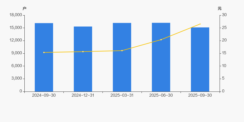 2024年9月30日至今,公司股东户数有所下降,区间跌幅为6.28%。2024年9月30日至2025年9月30日区间股价上涨72.90%。