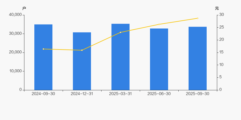 2024年9月30日至今,公司股东户数有所下降,区间跌幅为3.60%。2024年9月30日至2025年9月30日区间股价上涨74.96%。