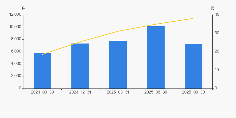 截至2025年9月30日,公司最新总股本为7497万股,其中流通股本为5966.1万股。户均持有流通股数量由上期的5881股上升至8223股,户均流通市值31.29万元。