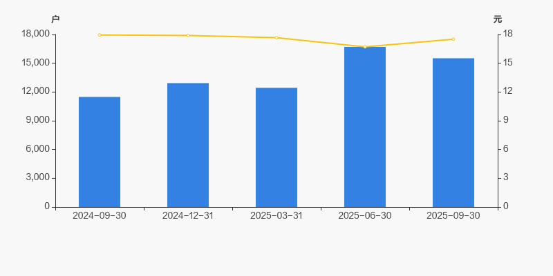 截至2025年9月30日,公司最新总股本为1.97亿股,其中流通股本为1.96亿股。户均持有流通股数量由上期的7296股上升至1.26万股,户均流通市值22.11万元。