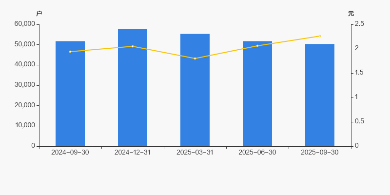 截至2025年9月30日,公司最新总股本为10.07亿股,且均为流通股。户均持有流通股数量由上期的1.95万股上升至2万股,户均流通市值4.52万元。
