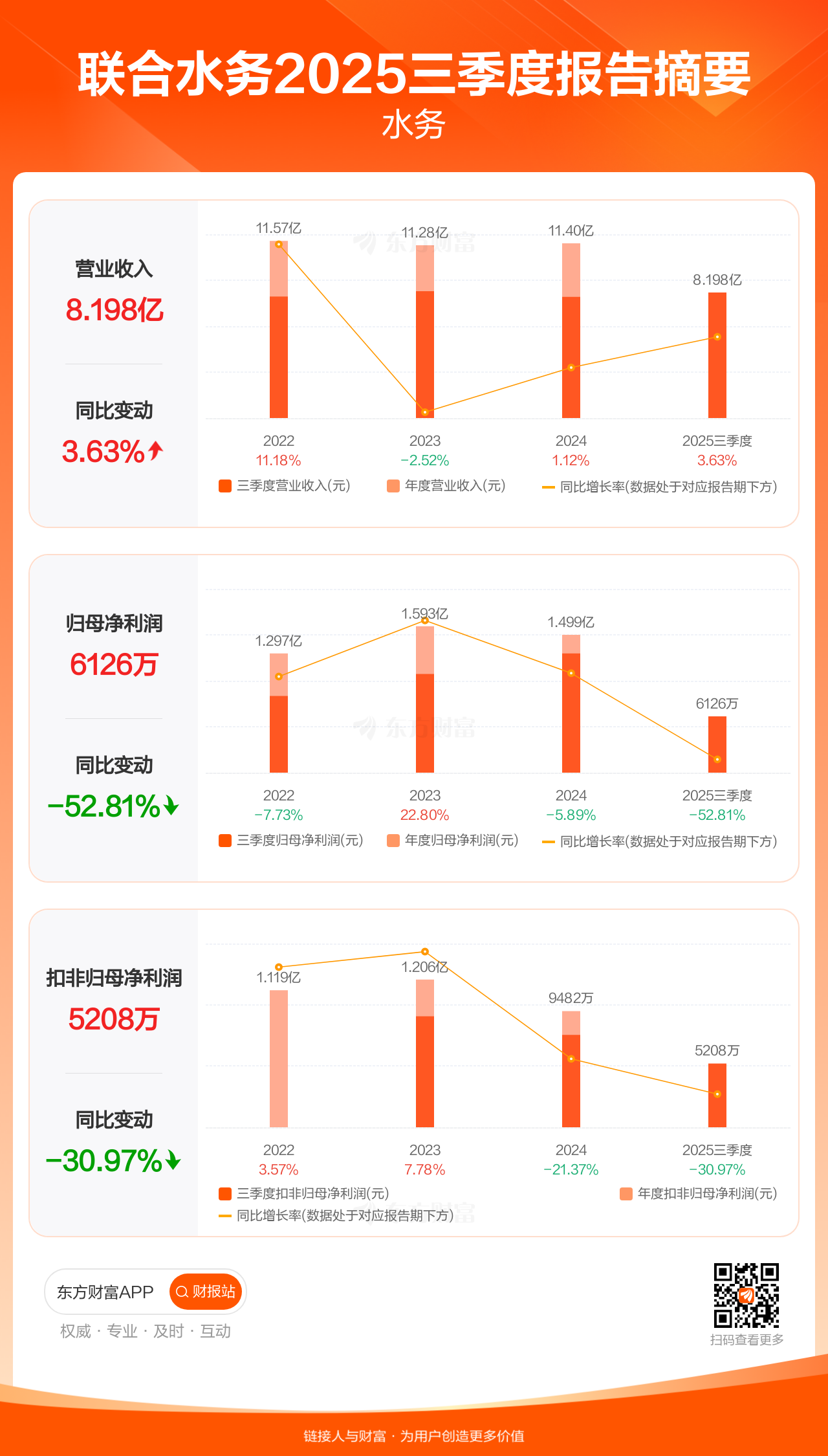图解财报:联合水务前三季归母净利润6126.48万元,同比减少52.81%