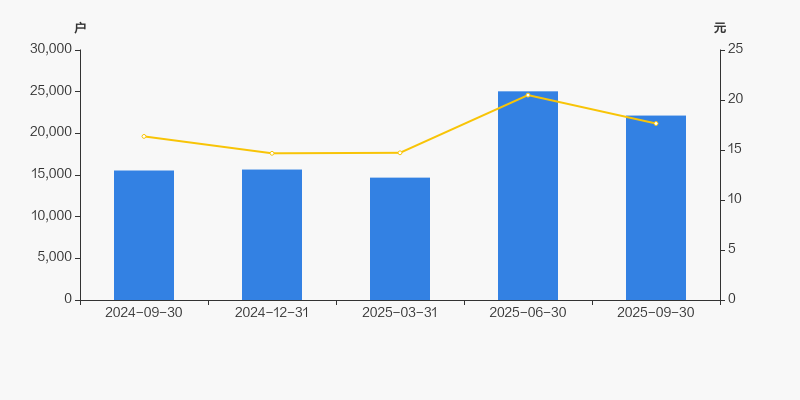 截至2025年9月30日,公司最新总股本为1.42亿股,其中流通股本为1.39亿股。户均持有流通股数量由上期的5563股上升至6295股,户均流通市值11.11万元。