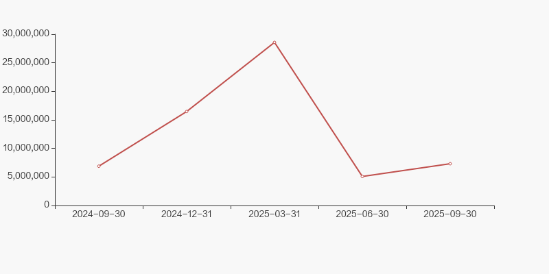 截至2025年9月30日,公司最新总股本为14.01亿股,其中流通股本为10.57亿股。户均持有流通股数量由上期的6982股上升至8447股,户均流通市值8.44万元。