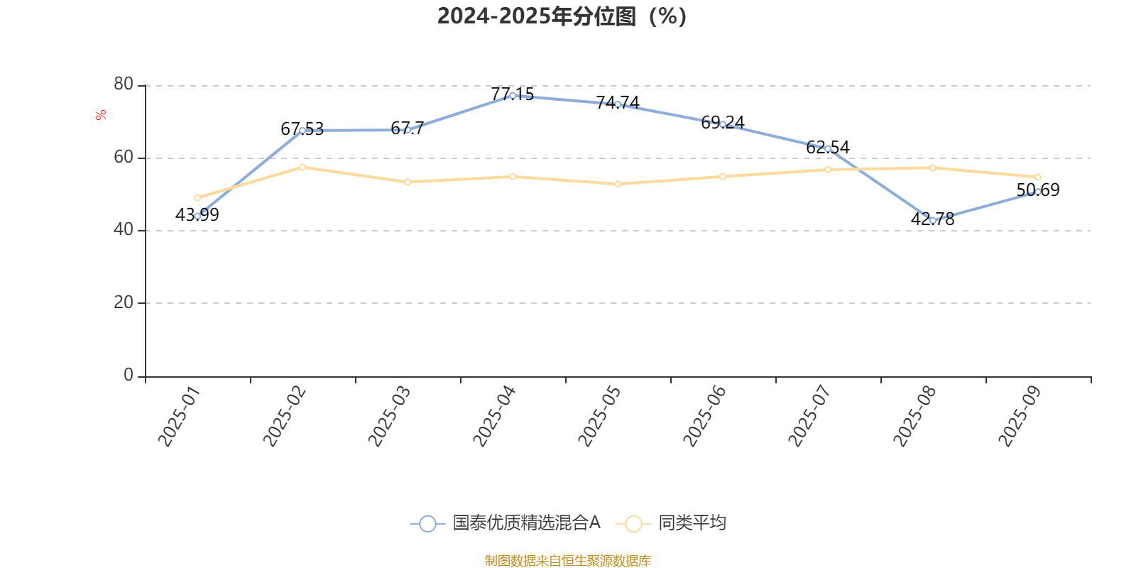 通过所选区间该基金净值增长率分位图,可以观察该基金与同类基金业绩比较情况。图为坐标原点到区间内某时点的净值增长率在同类基金中的分位数。