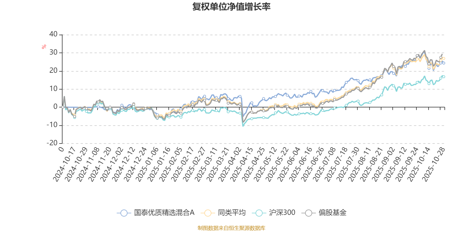 截至10月28日,国泰优质精选混合A近三个月复权单位净值增长率为8.03%,位于同类可比基金488/689;近半年复权单位净值增长率为19.83%,位于同类可比基金482/688;近一年复权单位净值增长率为24.54%,位于同类可比基金350/653。