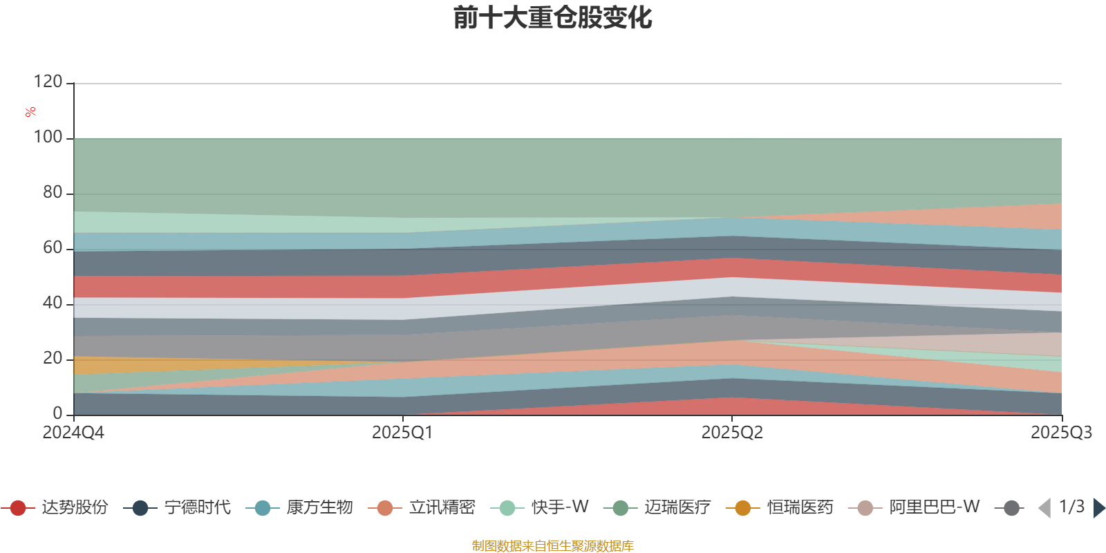 该基金持股集中度较高,且持股标的较为稳定。截至2025年三季度末,基金十大重仓股分别是美团-W、腾讯控股、阿里巴巴-W、宁德时代、顺丰控股、立讯精密、美的集团、百济神州、农夫山泉、快手-W。