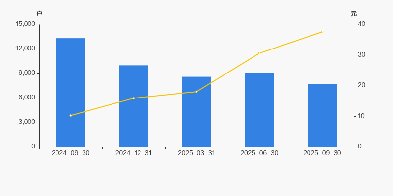 2024年9月30日至今,公司股东户数显著下降,区间跌幅为42.30%。2024年9月30日至2025年9月30日区间股价上涨264.39%。