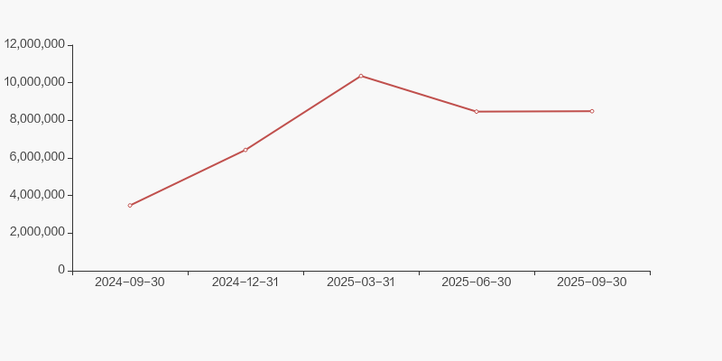 2024年9月30日至今,公司股东户数显著大幅增长,区间涨幅达52.39%。2024年9月30日至2025年9月30日区间股价下降5.39%。