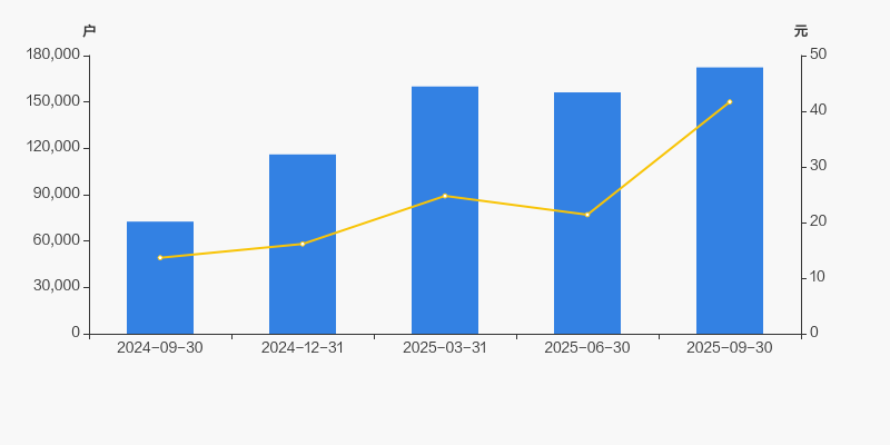 2024年9月30日至今,公司股东户数成倍增长,区间涨幅达137.48%。2024年9月30日至2025年9月30日区间股价上涨205.04%。