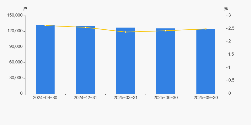 2024年9月30日至今,公司股东户数有所下降,区间跌幅为5.59%。2024年9月30日至2025年9月30日区间股价下降4.96%。