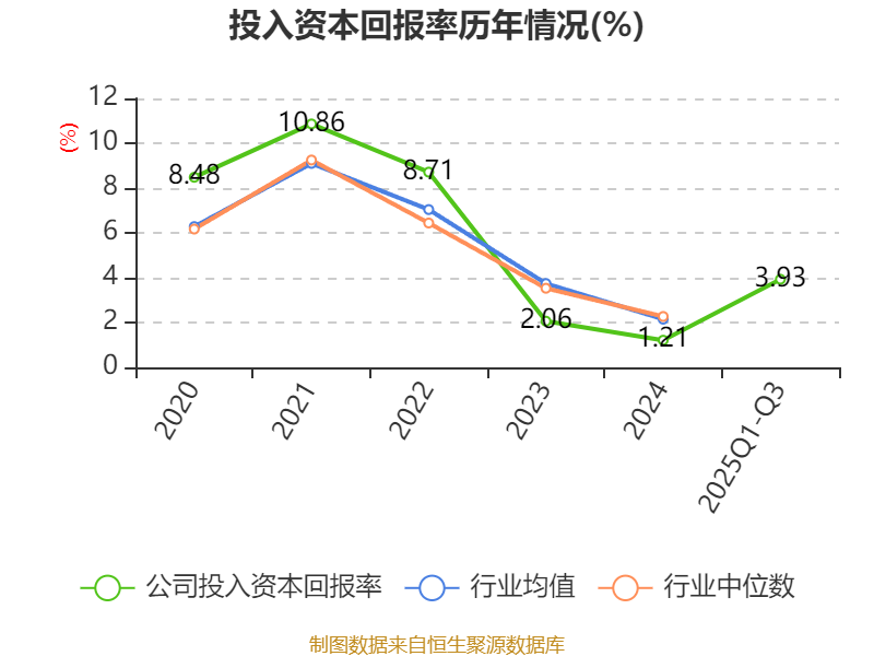 盈利能力方面, 2025年前三季度公司加权平均净资产收益率为5%,同比上升1.91个百分点。公司2025年前三季度投入资本回报率为3.93%,较上年同期上升1.46个百分点。