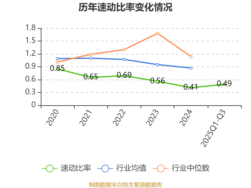 2025年前三季度,公司流动比率为1.41,速动比率为0.49。