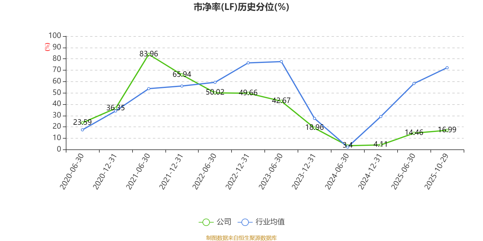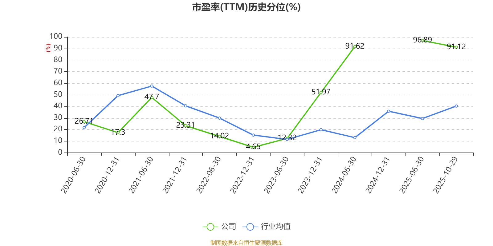 市盈率、市净率为负时,不显示当期分位数,会导致折线图中断。