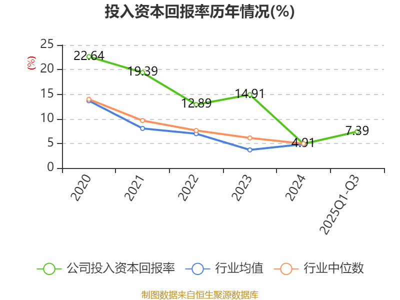 盈利能力方面, 2025年前三季度公司加权平均净资产收益率为8.12%,同比上升0.62个百分点。公司2025年前三季度投入资本回报率为7.39%,较上年同期上升0.57个百分点。