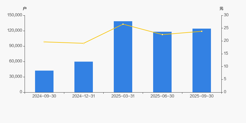 2024年9月30日至今,公司股东户数成倍增长,区间涨幅达193.96%。2024年9月30日至2025年9月30日区间股价上涨21.02%。