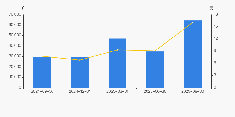 2024年9月30日至今,公司股东户数成倍增长,区间涨幅达120.54%。2024年9月30日至2025年9月30日区间股价上涨106.96%。