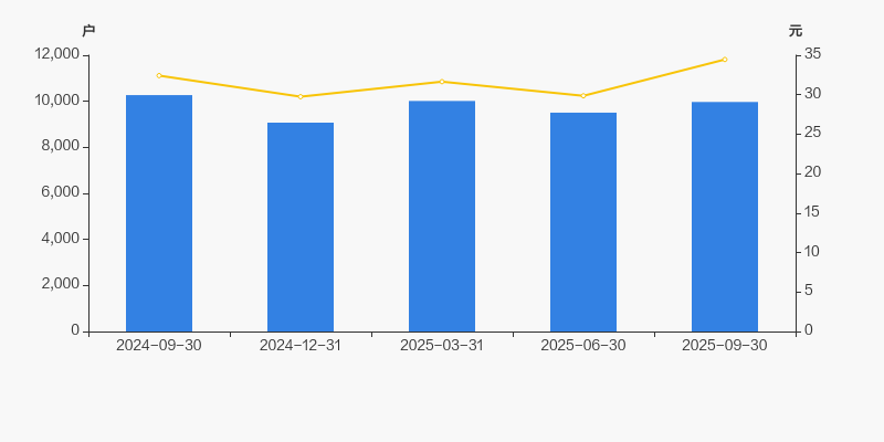 2024年9月30日至今,公司股东户数有所下降,区间跌幅为2.90%。2024年9月30日至2025年9月30日区间股价上涨6.29%。