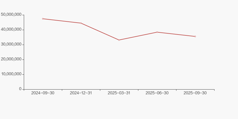 截至2025年9月30日,公司最新总股本为4.63亿股,其中流通股本为4.6亿股。户均持有流通股数量由上期的1.09万股上升至1.1万股,户均流通市值32.75万元。