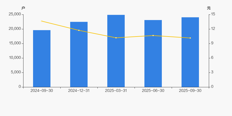 2024年9月30日至今,公司股东户数显著增长,区间涨幅为22.60%。2024年9月30日至2025年9月30日区间股价下降25.61%。