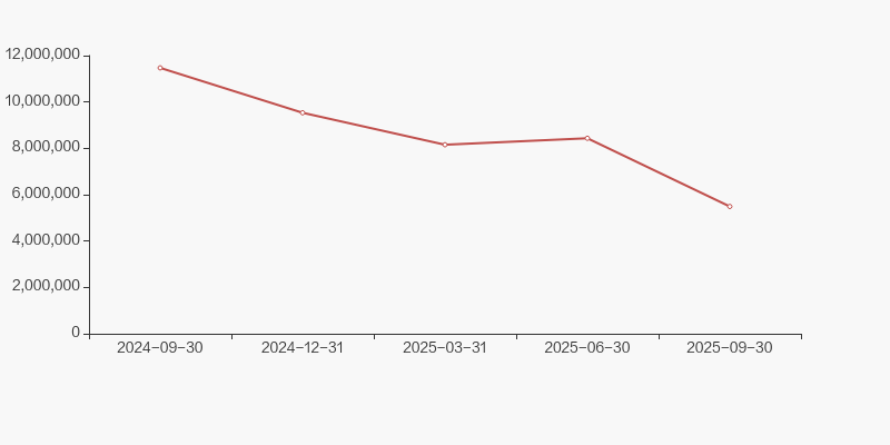 截至2025年9月30日,公司最新总股本为6.71亿股,且均为流通股。户均持有流通股数量由上期的8912股下降至6394股,户均流通市值20.87万元。