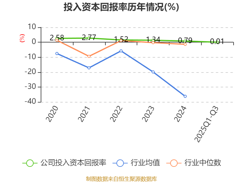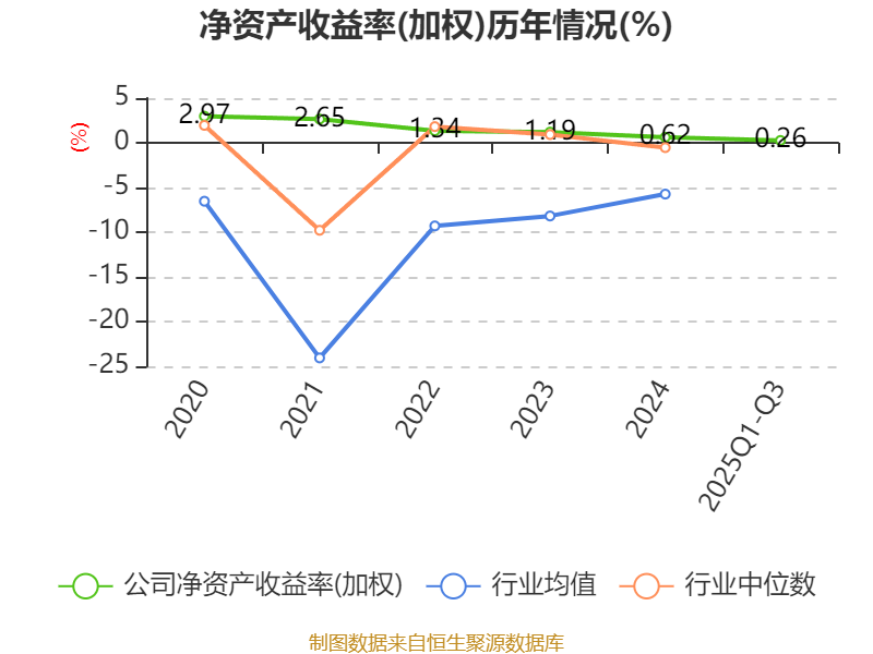 盈利能力方面, 2025年前三季度公司加权平均净资产收益率为0.26%,同比下降0.14个百分点。公司2025年前三季度投入资本回报率为0.01%,较上年同期下降0.31个百分点。