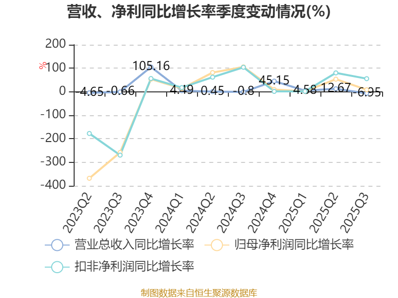 资产重大变化方面,截至2025年三季度末,公司应收票据及应收账款较上年末增加8.88%,占公司总资产比重上升4.42个百分点;交易性金融资产合计较上年末减少100%,占公司总资产比重下降3.02个百分点;其他流动资产较上年末减少37.87%,占公司总资产比重下降0.77个百分点;存货较上年末增加11.7%,占公司总资产比重上升0.51个百分点。