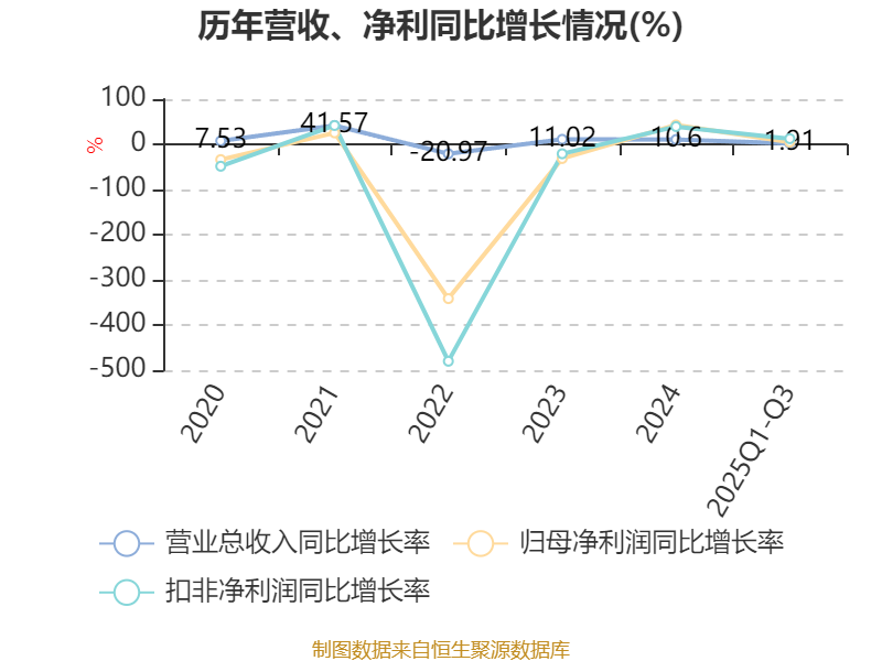 负债重大变化方面,截至2025年三季度末,公司短期借款较上年末增加63.98%,占公司总资产比重上升7.13个百分点;应付票据及应付账款较上年末减少17.29%,占公司总资产比重下降2.1个百分点;应付职工薪酬较上年末减少31.68%,占公司总资产比重下降1.32个百分点;其他应付款(含利息和股利)较上年末减少42.63%,占公司总资产比重下降0.52个百分点。